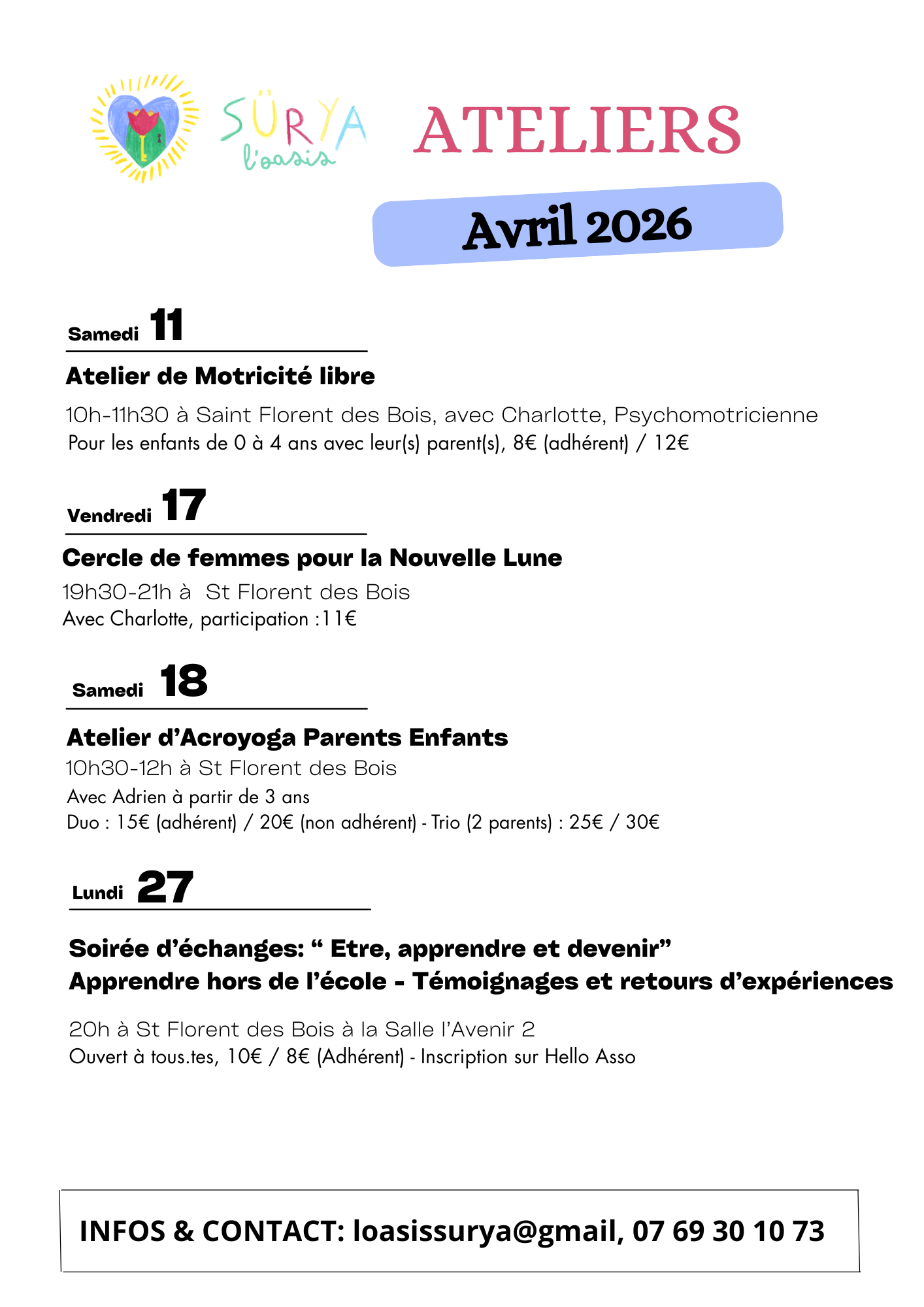 Ateliers de l'Oasis Sürya Avril 2026
